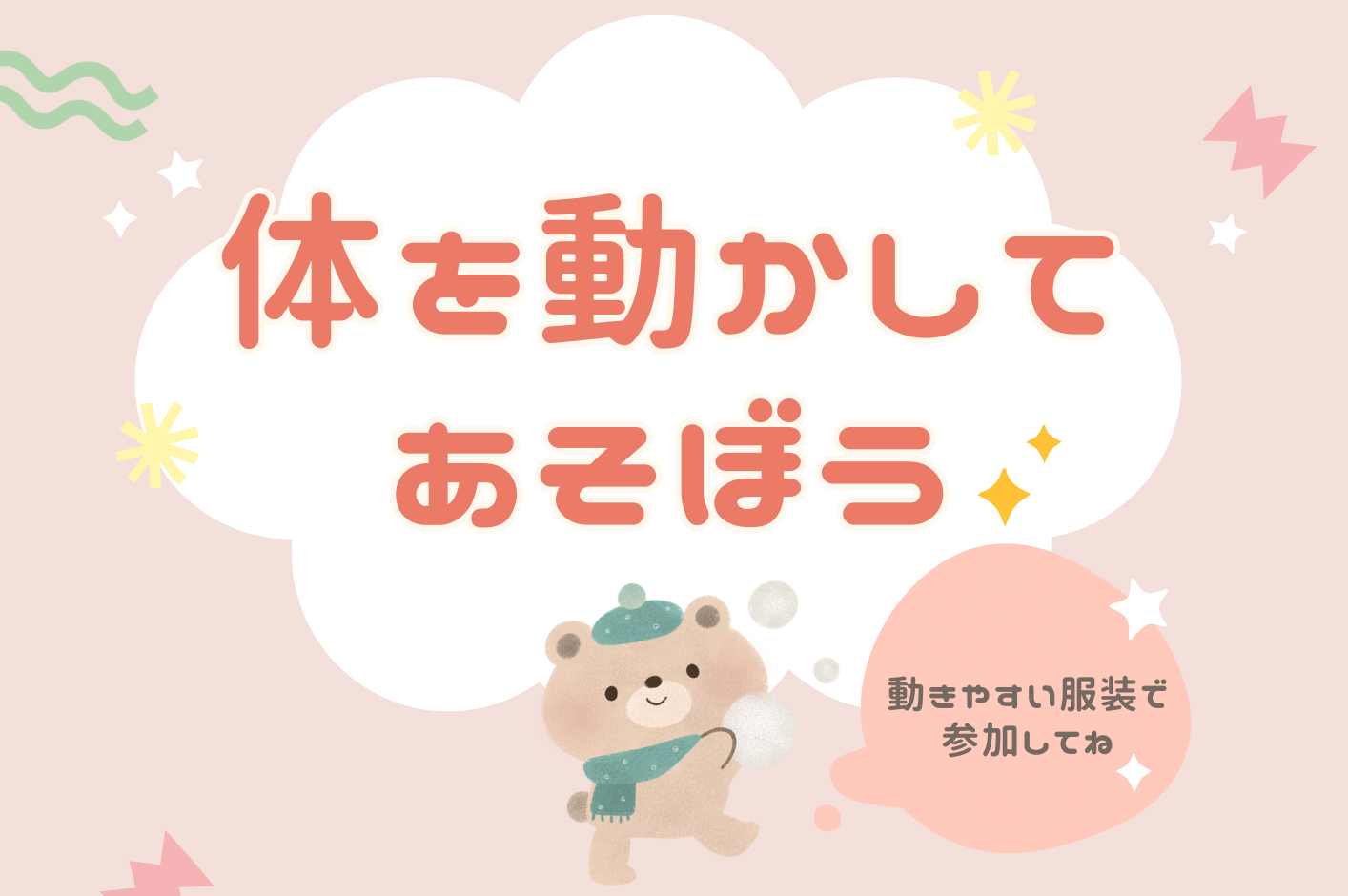New Categoryテレワーク一時預かり保育遊戯施設 Year20262025 2025.12.12冬休み限定キャンペーンのお知らせ お知らせ情報 2025.12.121/19(月) 体を動かして遊ぼう 一時預かり保育 2025.12.121/13(火) たこを作って飛ばそう 一時預かり保育 2025.12.121/16(金) はいはいレース 遊戯施設 2025.12.09年末年始の営業日について お知らせ情報 2025.12.012026/1/5(月) エアトラックで遊ぼう 遊戯施設 2025.12.0112/26(金) Let’s ダンス! 遊戯施設 2025.11.21遊戯施設【12/5(金)】団体貸切のお知らせ お知らせ情報 2025.11.18遊戯施設【11/19(水)・11/21(金)】団体貸切のお知らせ お知らせ情報 2025.11.1712/19(金) アスもでクリスマス 遊戯施設123