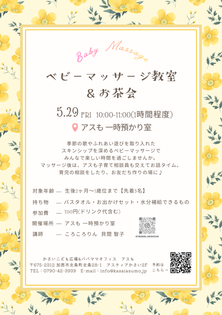 対象年齢:生後2ヶ月~1歳位まで【先着5名】