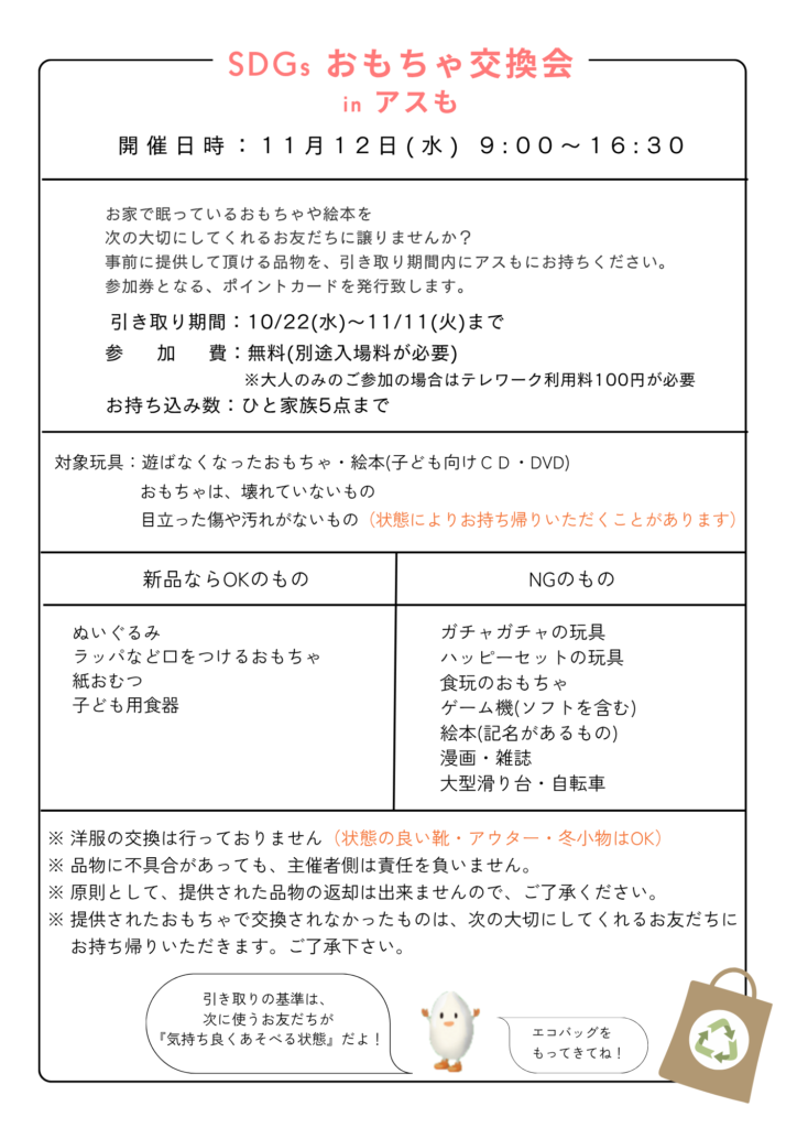 第4回 SDGs おもちゃ交換会 開催決定!