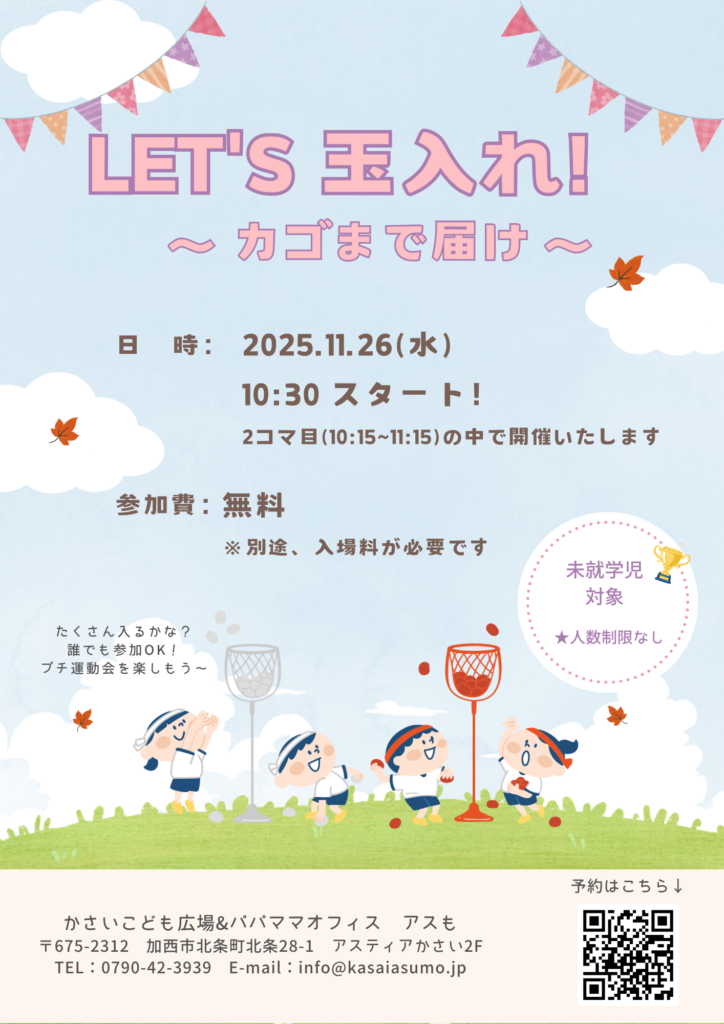 11月の遊戯施設イベントは「Let’s 玉入れ!カゴまで届け!」です!