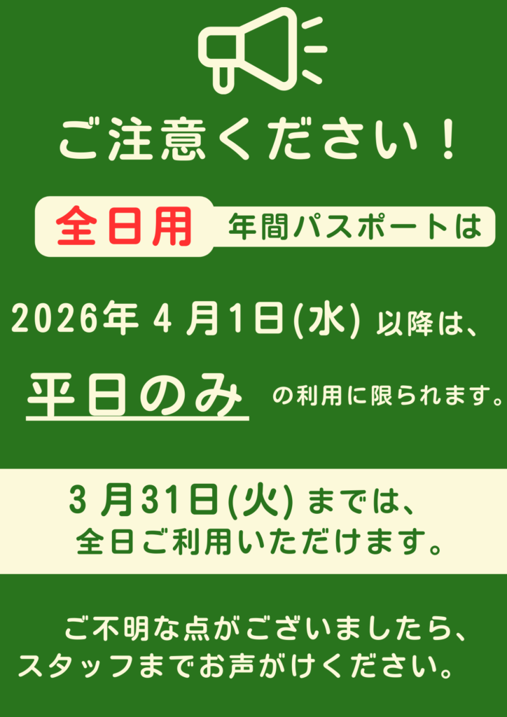 本年4月1日(水)以降、平日のみの利用に限定し、土日祝日のご利用はできなくなります。